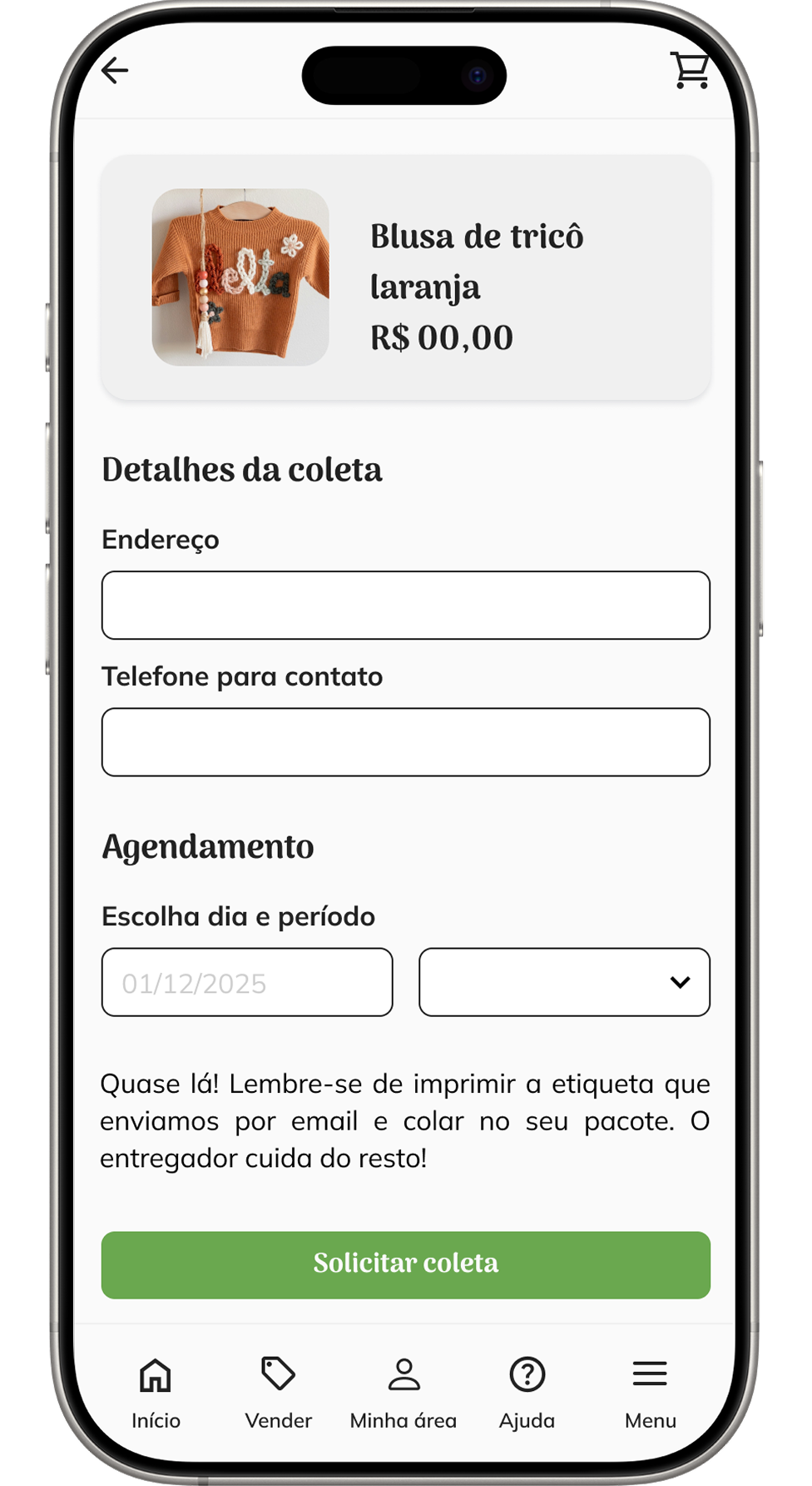 Caio, pai de uma bebê e sobrecarregado com demandas do trabalho e da casa, precisa de uma forma ágil e intuitiva para transformar o acúmulo de roupas em dinheiro, pois tem pouco tempo para lidar com processos longos de descrição, negociação e com a logística de envio.
