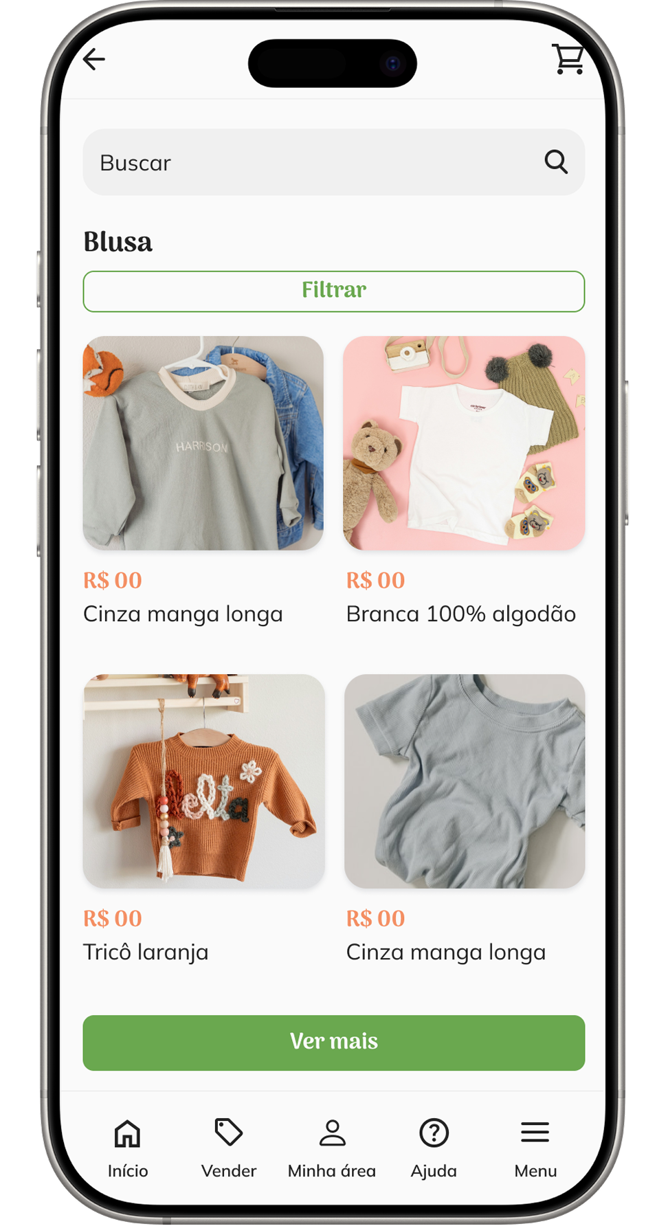 Helena, mãe moderna e antenada no mundo digital e sustentabilidade, precisa de uma plataforma dedicada para comprar roupas infantis de marca, de alta qualidade e com valores acessíveis, pois é preocupada com o processo de descarte, a saúde do meio ambiente e precisa manter suas finanças organizadas.